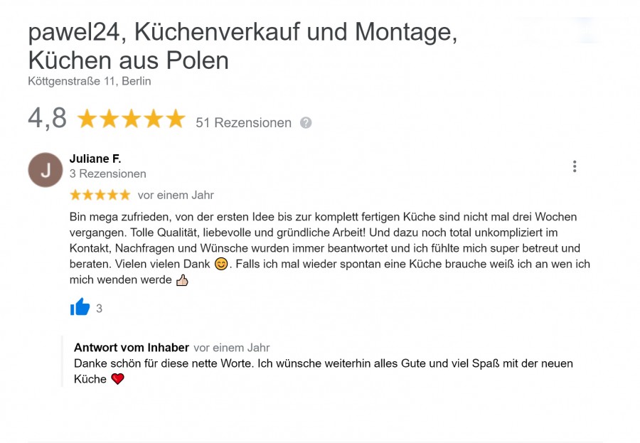Bist du mit unserem Service zufrieden? Hinterlasse uns gerne eine Bewertung auf Google über diesen [Link].