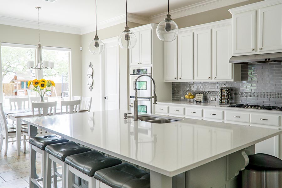 Auch die Arbeitsplatte trägt stark zum Gesamtbild der Küche bei. In skandinavischen Küchen werden häufig natürliche Materialien verwendet, die gut mit hellen Fronten harmonieren.