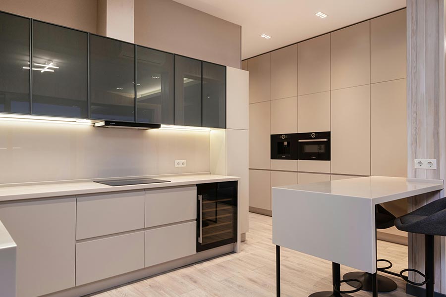 In modernen Küchen spielt auch das Design eine wichtige Rolle. Viele Küchen setzen auf integrierte Geräte, die hinter Küchenfronten verborgen sind. Dadurch entsteht ein ruhiges und einheitliches Erscheinungsbild.